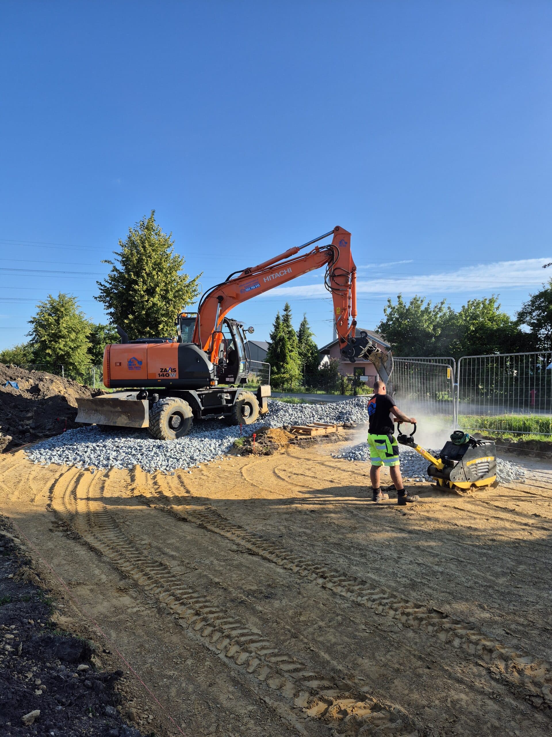 Zobacz wybrane realizacje wykonane z wykorzystaniem naszej dużej koparki gąsienicowej Hitachi o masie 17 ton. Dzięki temu zaawansowanemu sprzętowi możemy z powodzeniem realizować rozbudowane projekty ziemne – od głębokich wykopów pod fundamenty, przez niwelację dużych terenów, aż po prace rozbiórkowe i przygotowanie placów pod inwestycje. Precyzja, moc i doświadczenie – to połączenie, które widać na każdym zdjęciu.